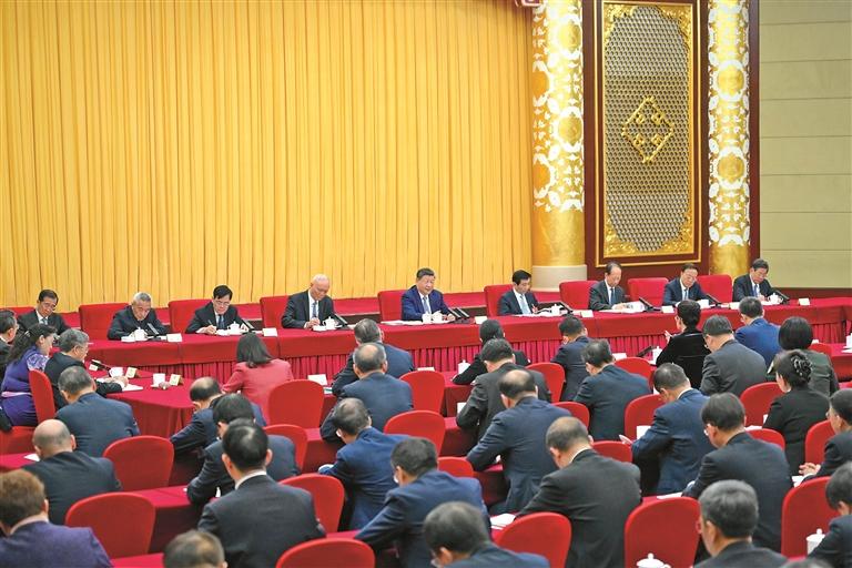 ཞི་ཅིན་ཕིང་གིས་གསུངས་དོན། བདེ་ཐང་ཀྲུང་གོ་འཛུགས་སྐྲུན་བྱེད་པར་སྤྱི་ཚོགས་ཡོངས་ཀྱིས་ཐུན་མོང་ཐོག་འབད་བརྩོན་བྱེད་དགོས། མི་དམངས་སྲིད་གྲོས་ཀྱིས་ཆེད་དོན་གྲོས་མོལ་སྒྲིག་གཞིའི་ནུས་པ་འདོན་པ་དང་། འབྲེལ་ཡོད་རིགས་པའི་གཞུང་ལུགས་དང་ལག་ལེན་གྱི་གནད་དོན་ལ་དམིགས་ནས་བརྟག་དཔྱད་ཞིབ་འཇུག་གཏིང་ཟབ་བྱེད་པ། དངོས་སྒྲུབ་གོ་ཆོད་ཀྱི་ཁ་གཏད་འཇལ་ཐབས་དང་གྲོས་འགོ་འདོན་པ་བཅས་བྱེད་དགོས། ཞིང་བཟོའི་དམངས་གཙོ་ཏང་དང་དགུ་གསུམ་རིག་ཚོགས་ཀྱི་ཁོངས་མི་དང་། སྨན་རྫས་འཕྲོད་བསྟེན་རིགས་ཁོངས་དང་། སྤྱི་ཚོགས་ཕན་བདེ་དང་སྤྱི་ཚོགས་འགན་སྲུང་རིགས་ཁོངས་ཀྱི་མི་སྣས་ཆེད་ལས་ཀྱི་ལེགས་ཆ་ཡག་པོ་སྤྱད་དེ་བློ་གྲོས་དང་སྟོབས་ཤུགས་སྐྱེས་སུ་ཧུར་ཐག་འབུལ་དགོས། །